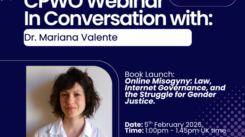 Join us for a webinar celebrating the launch of Online Misogyny: Law, Internet Governance, and the Struggle for Gender Justice by Dr. Mariana Valente‘.